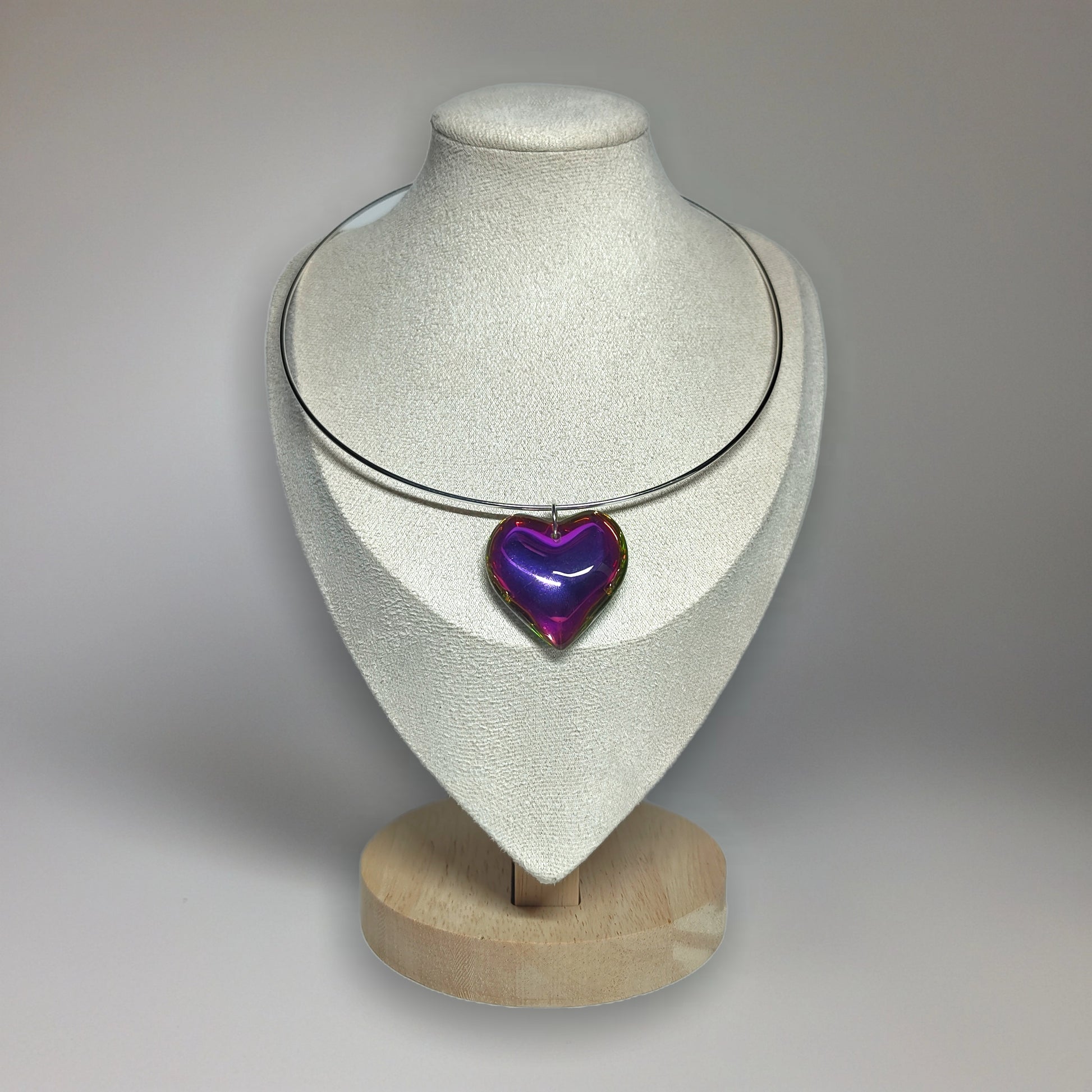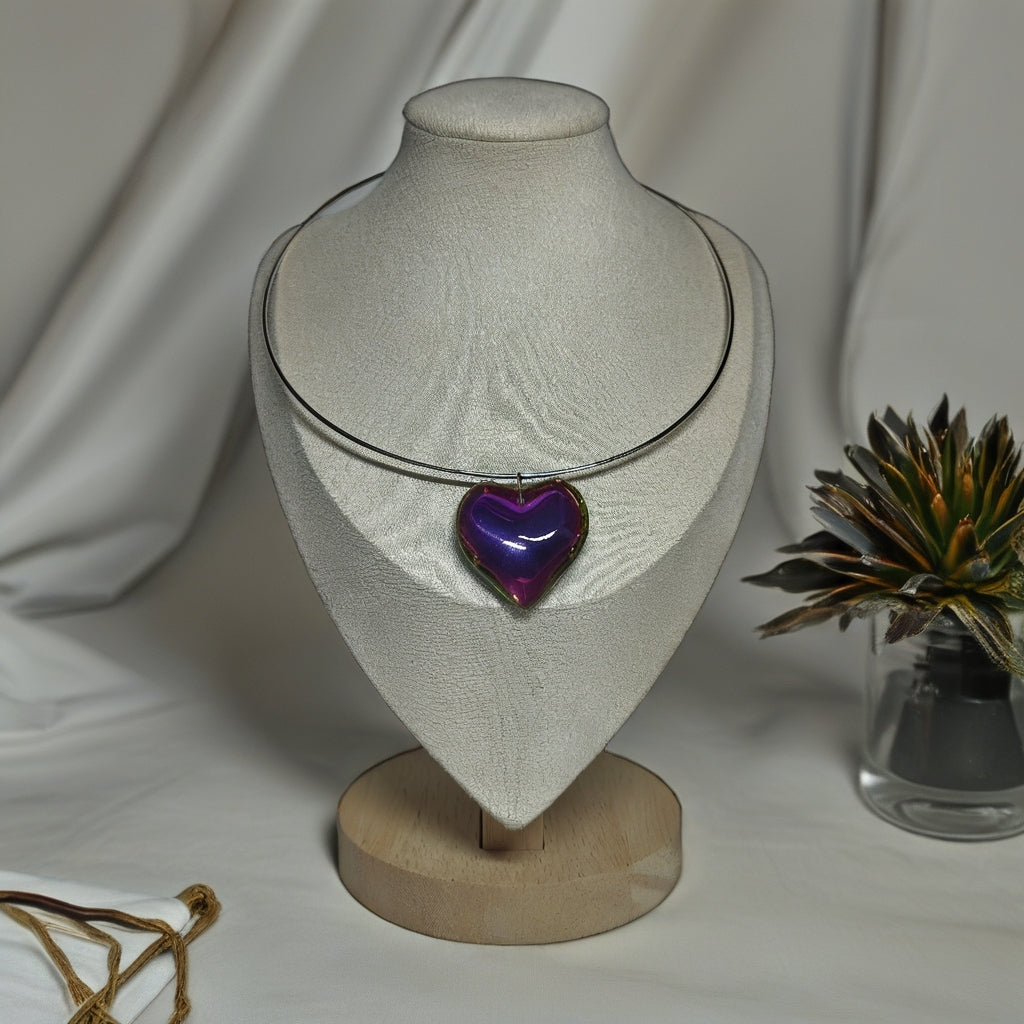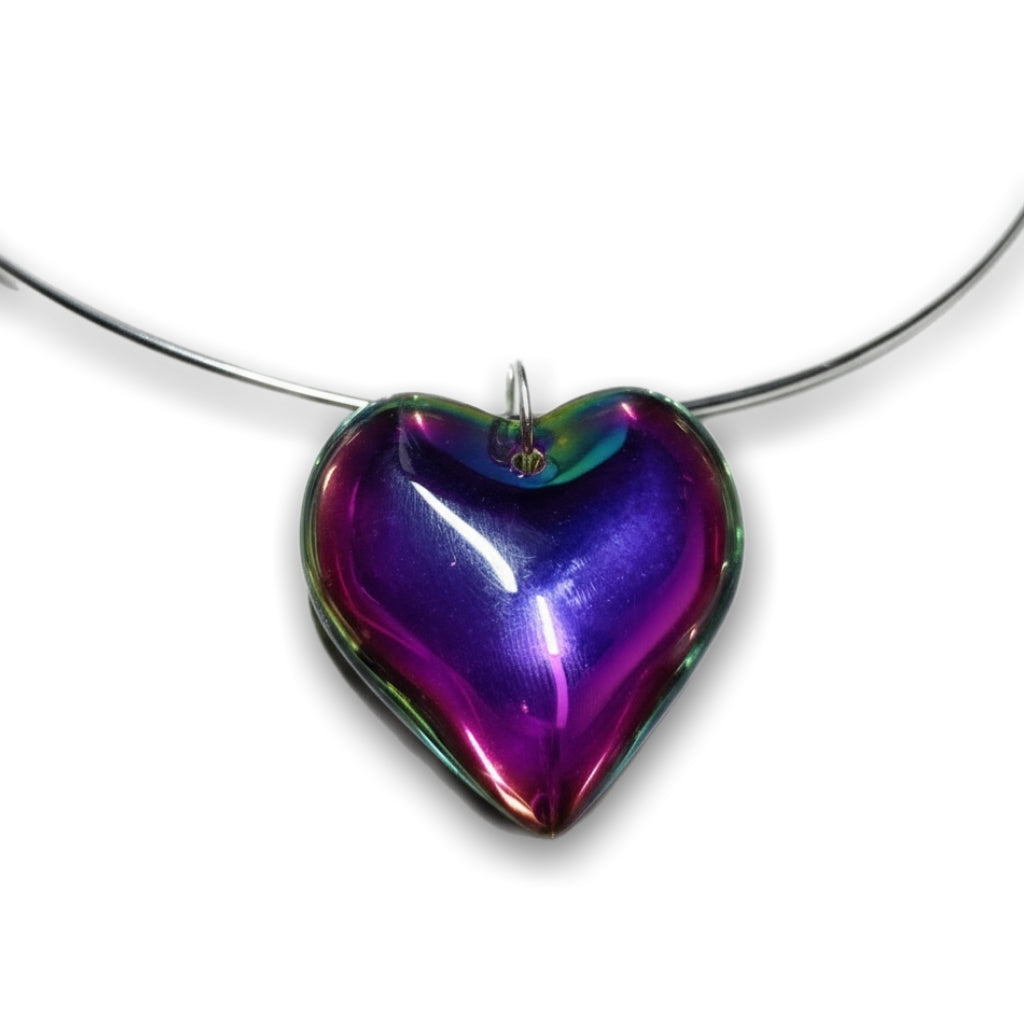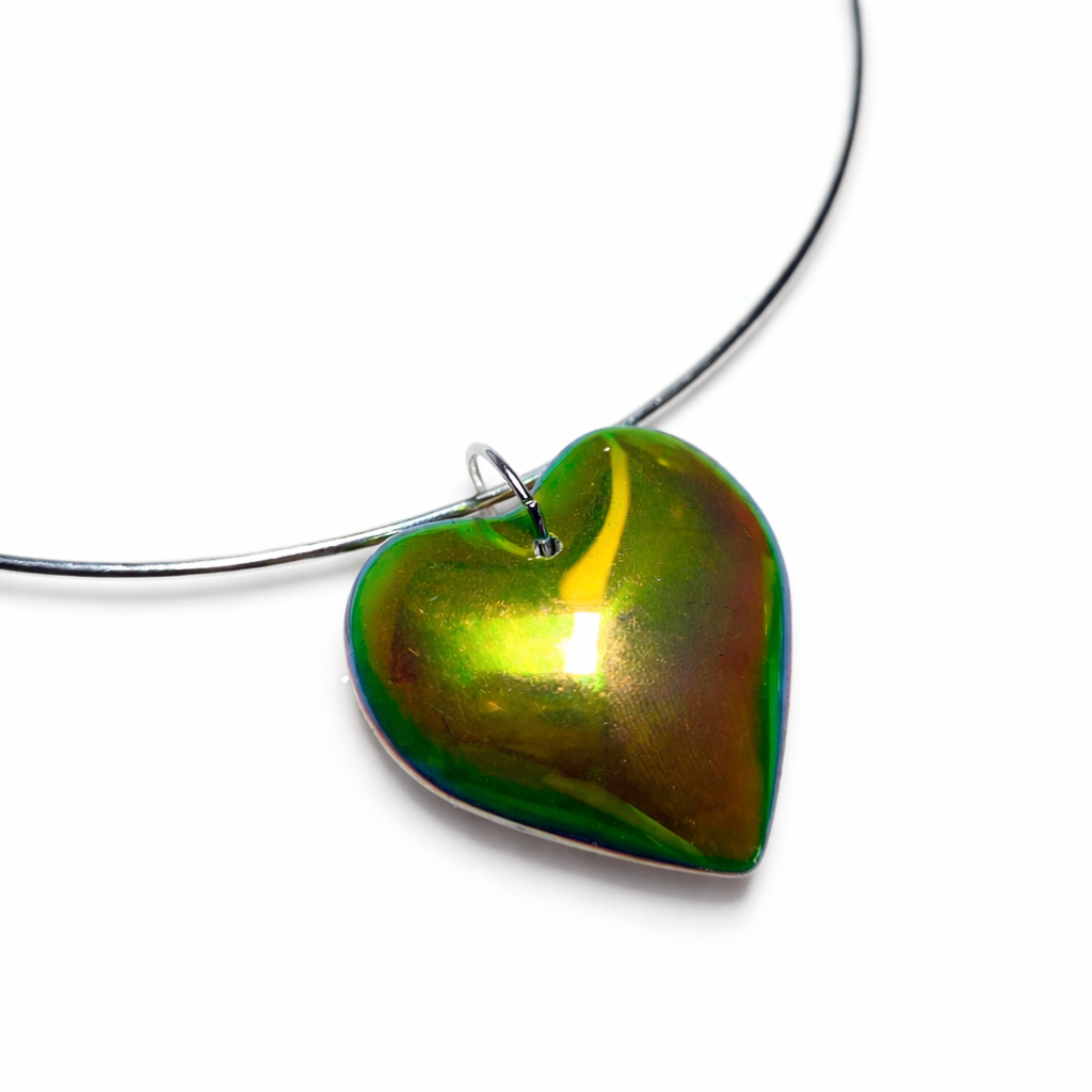 Materiales: gargantilla rígida cierra fácil de acero inoxidable (hipoalergénico), colgante de vidrio camaleón, es reversible y cambia de color.