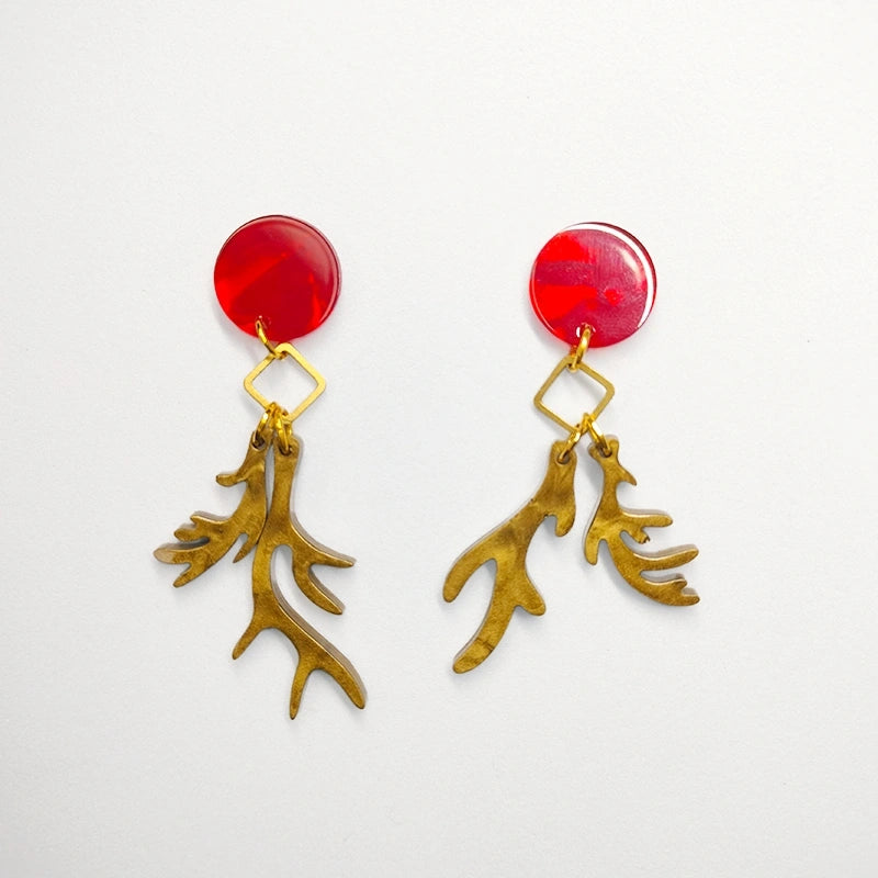 Pendientes de acrílico, acero inoxidable y resina. Perno de acero inoxidable (hipoalergénico).