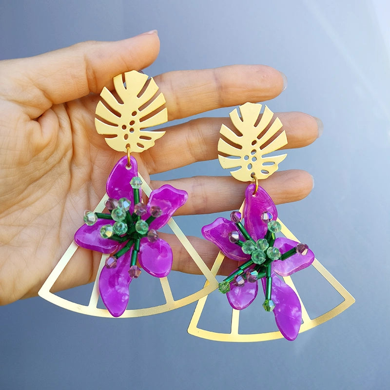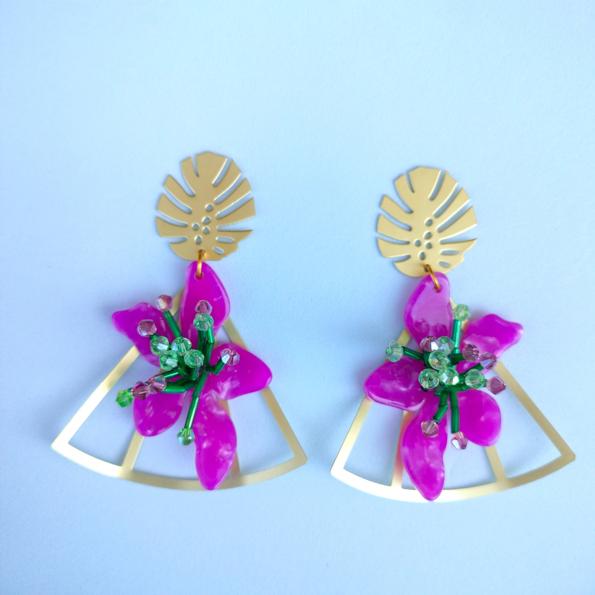 Pendiente de acero inoxidable dorado mate y plexy. Perno de acero inoxidable (hipoalergénico).