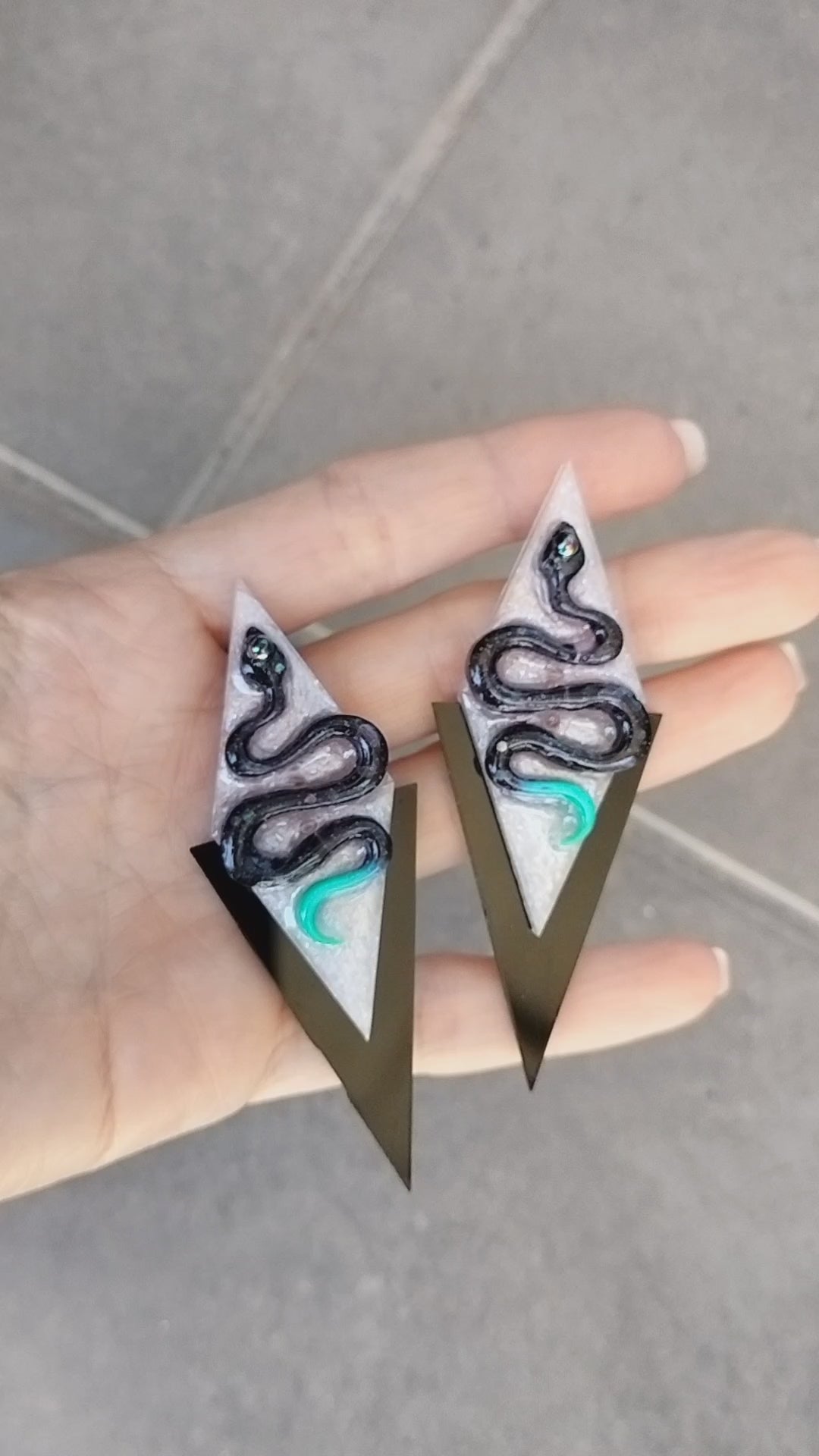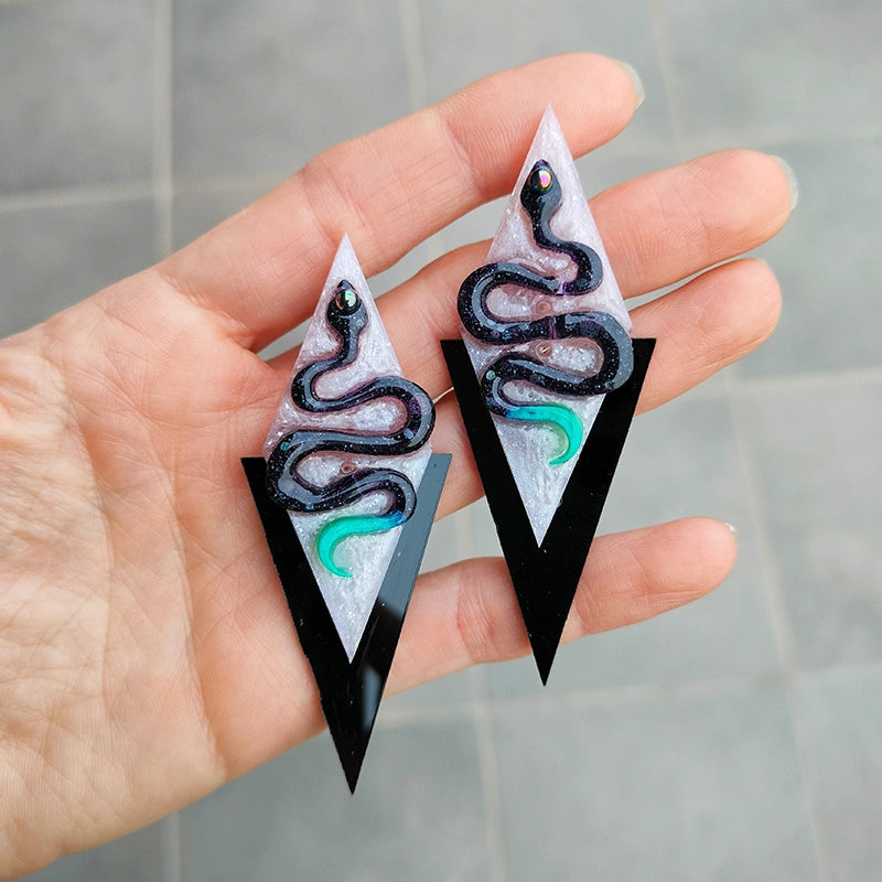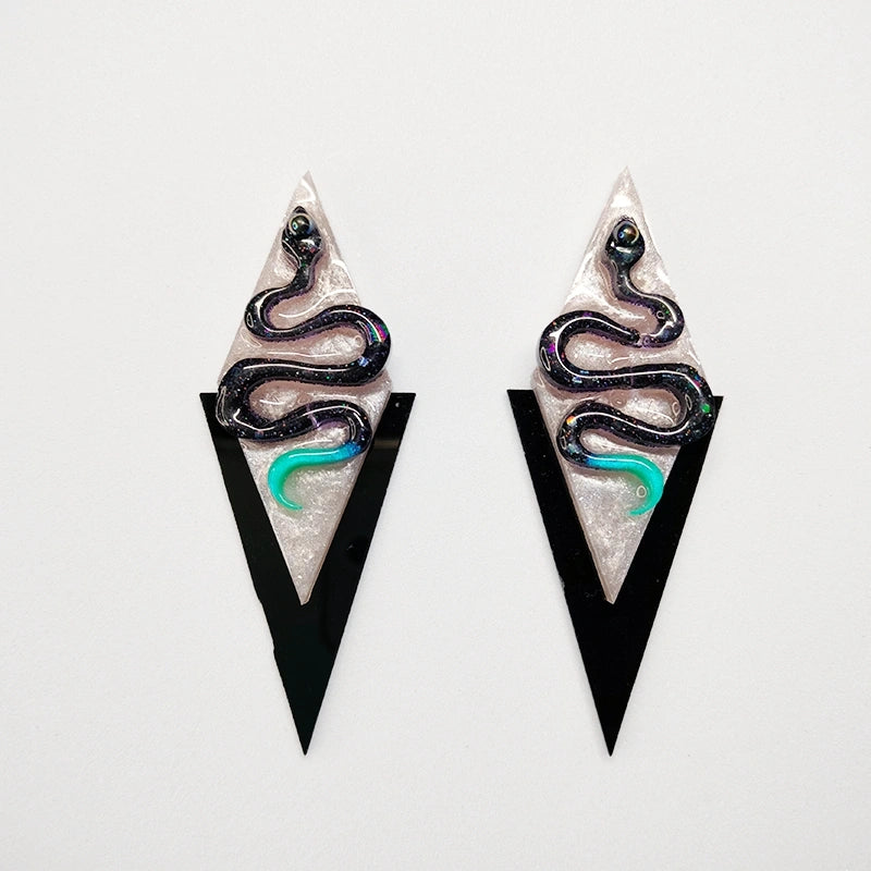 Pendientes pegados al lóbulo de plexy, resina y strass. Perno de acero inoxidable (hipoalergénico).